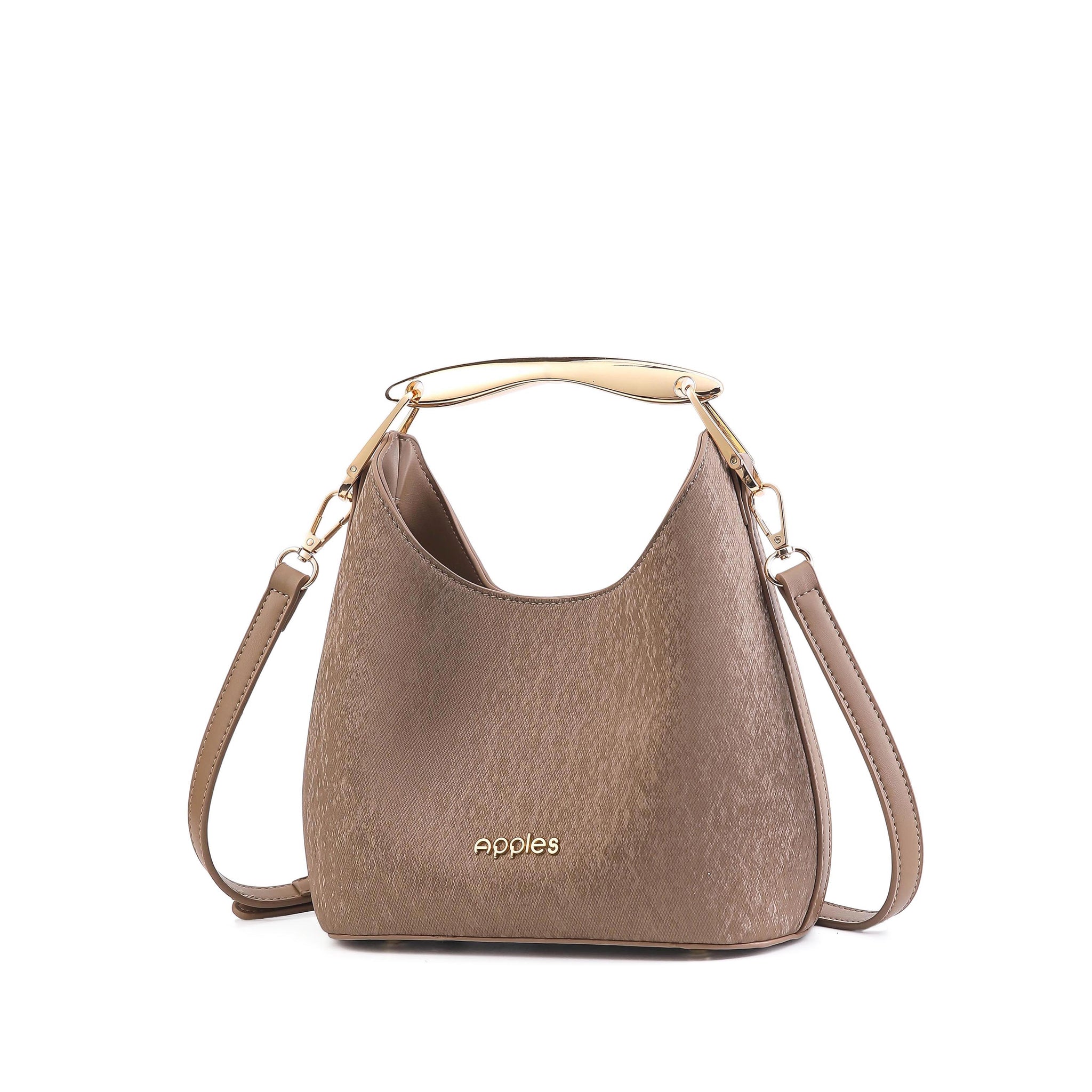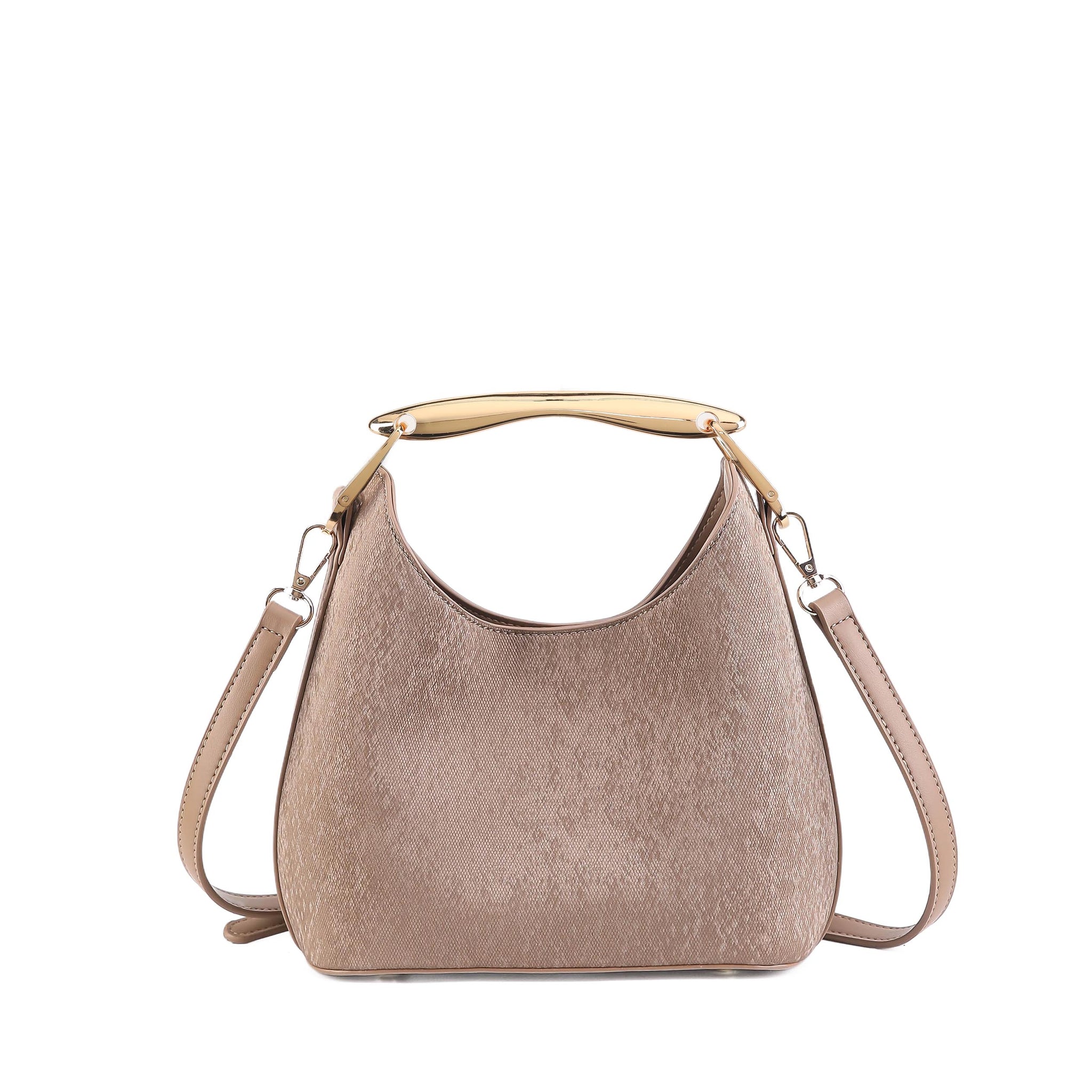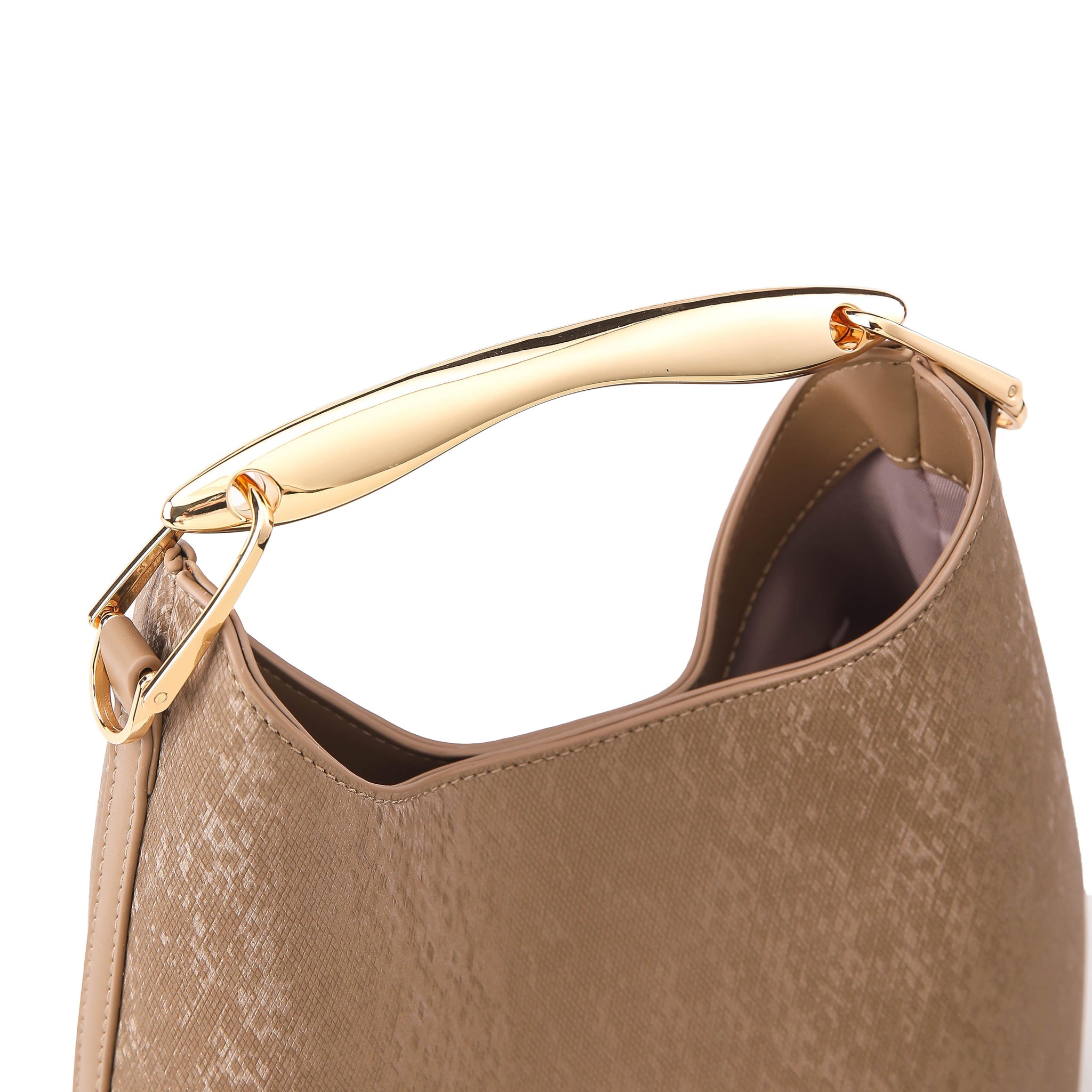 Aurelle is designed with intention. Its softly tapered form creates a natural drop shape that feels effortless yet composed. The polished metallic handle adds structure and contrast, giving the design a quiet boldness. Spacious without looking oversized, it balances statement and simplicity in one seamless piece.
