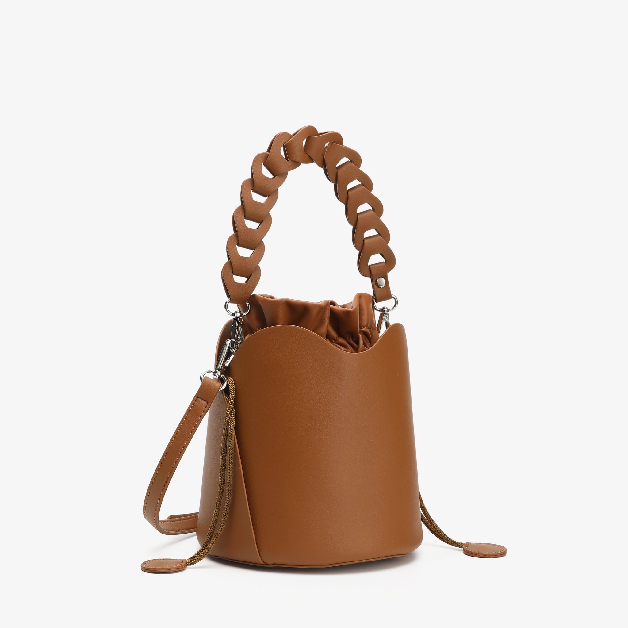 Sora is designed for everyday ease with a refined touch. Its smooth finish, softly gathered top, and distinctive chain detail give it character without trying too hard. The structured base keeps its shape, while the relaxed opening makes it practical for daily use.