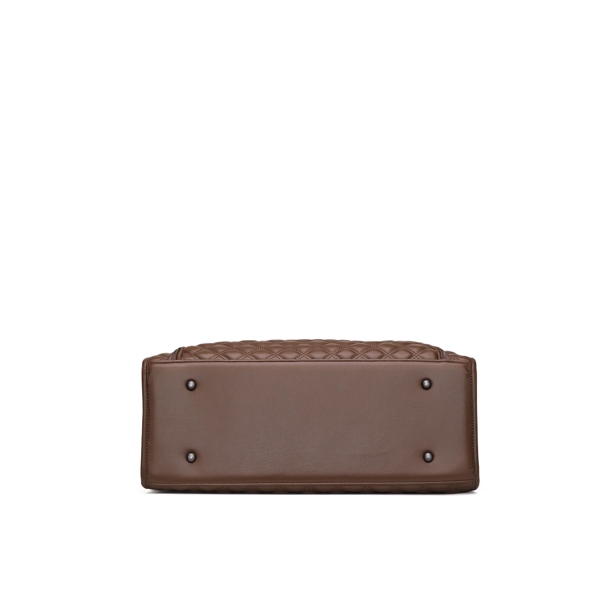 A spacious quilted carryall designed to handle work, travel, office, food, and daily life — all in one.