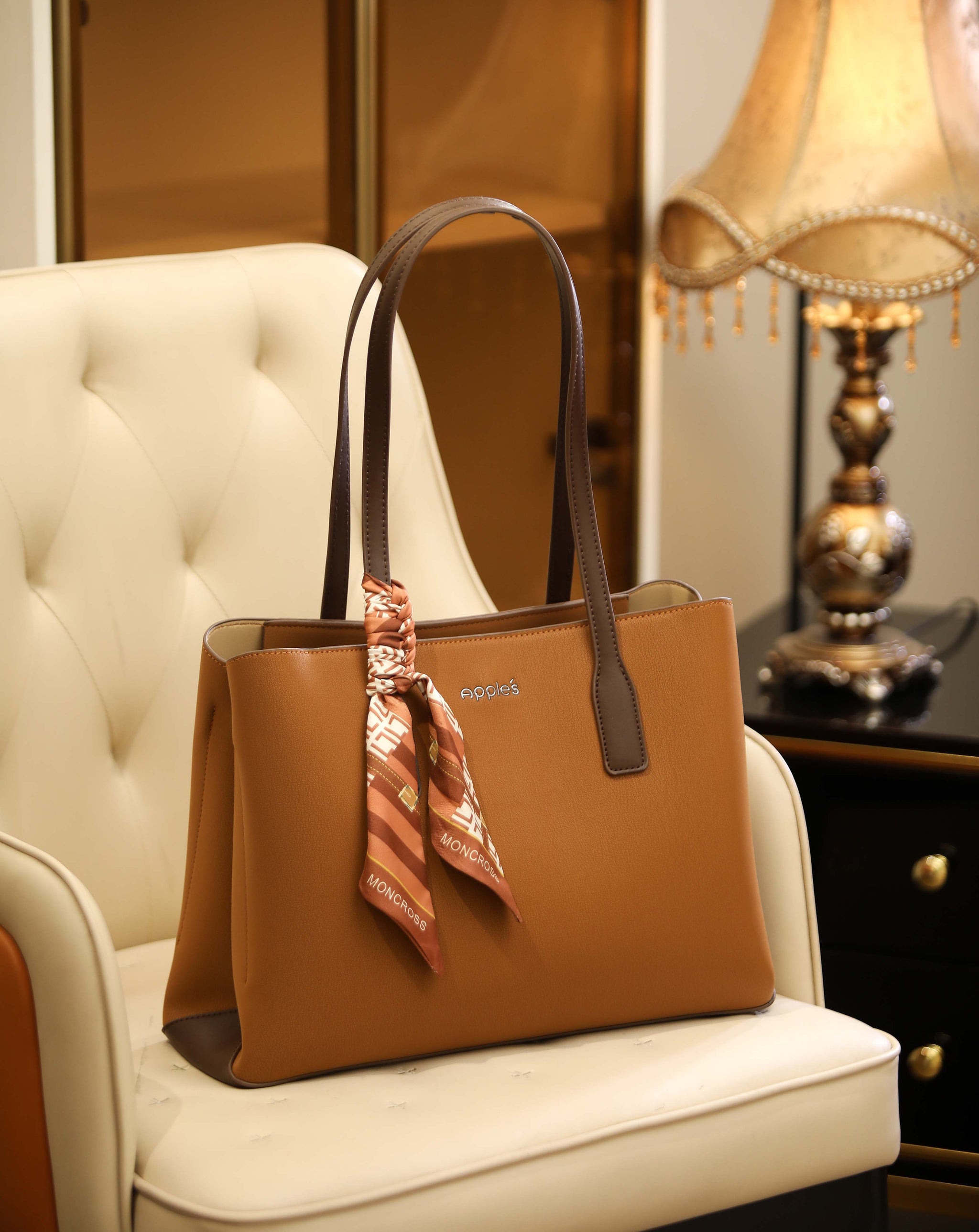 ✔ Broad, structured tote with a softly tapered base