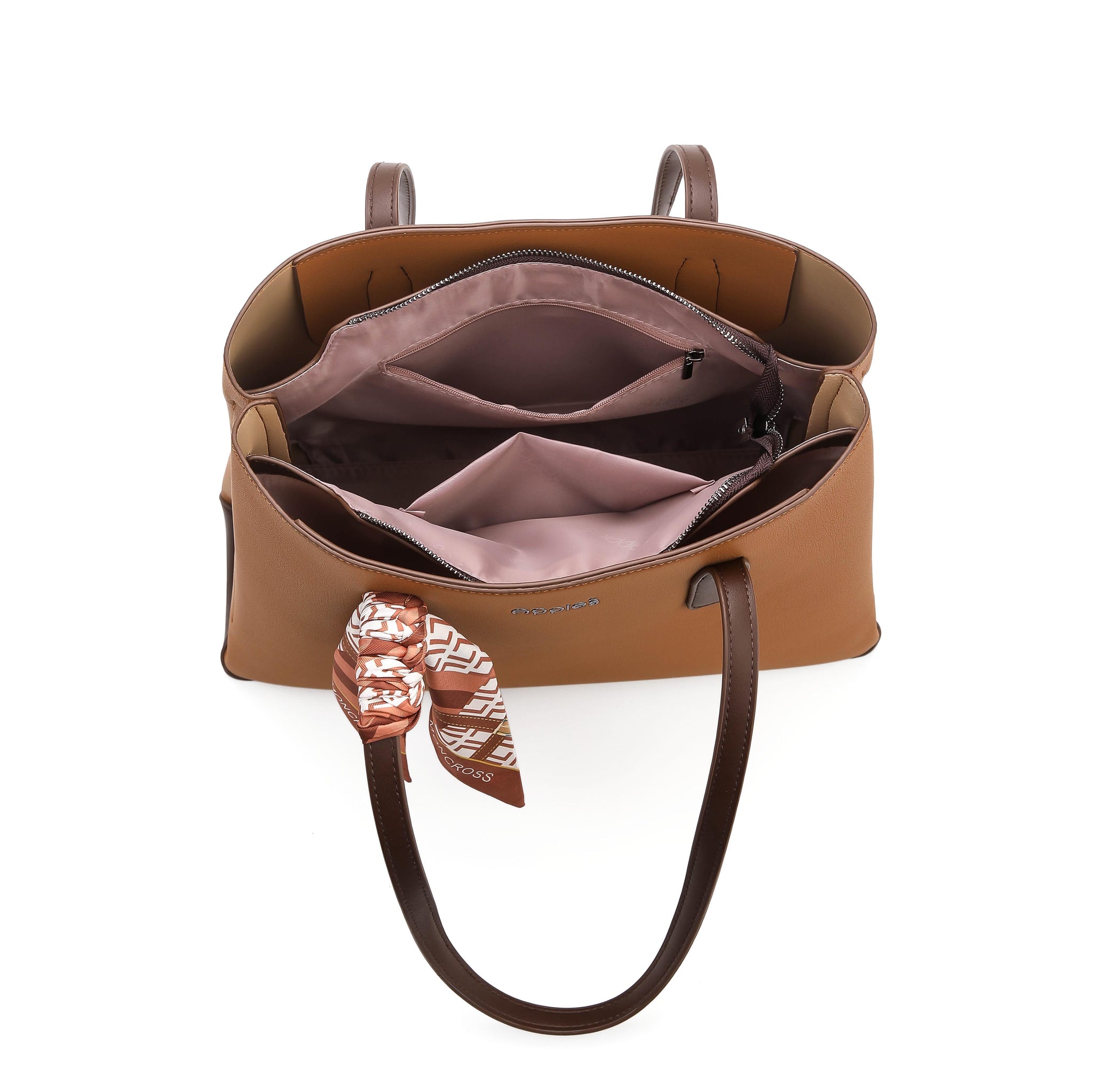 • Interior: Divided sections with a central zip pocket