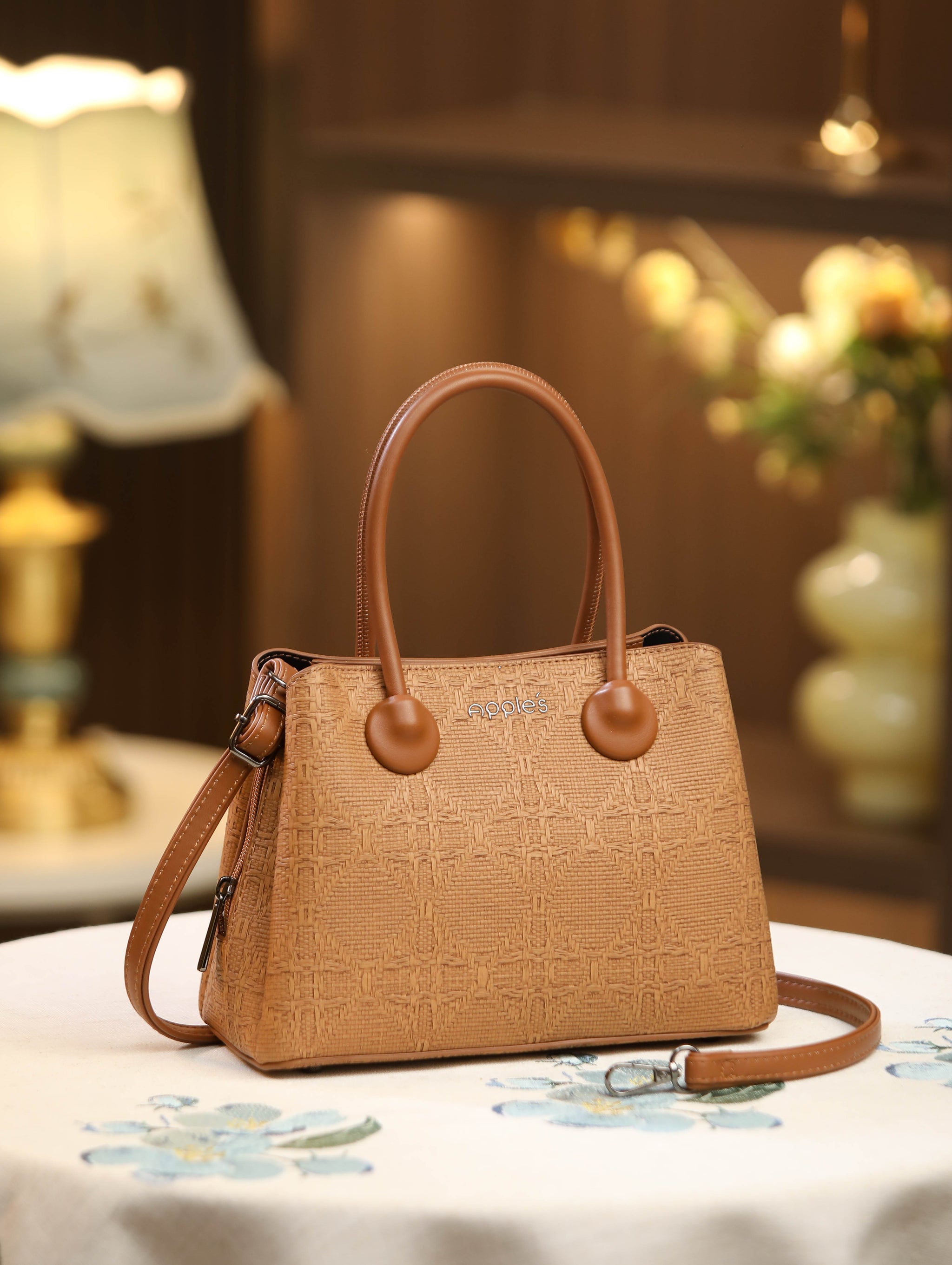 Zerelle is built around balance. Its compact body holds its structure with clarity, while the textured exterior gives depth without excess. The rounded handle anchors create a subtle signature detail, adding dimension without distraction. Inside, the layout is purposeful — organized, secure, and streamlined for daily movement.